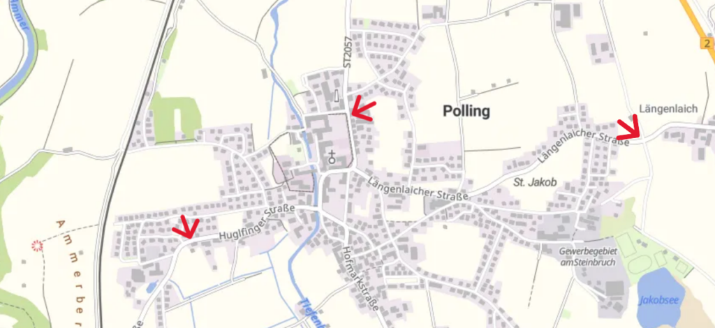 Die Mitfahrbänke von links nach rechts: Beim Gasthof Neuwirt, in der Huglfinger Straße und an der Kreuzung Längenleicherstraße und